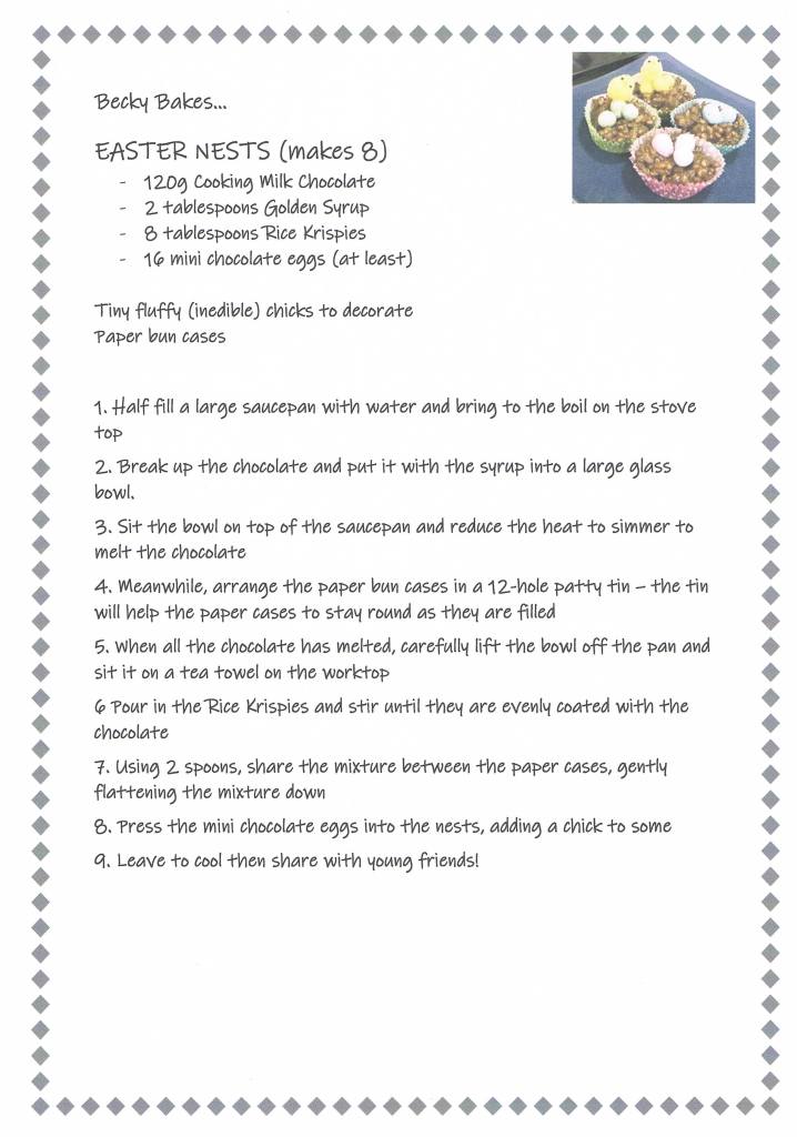 Just a few more days until the Easter Holiday but I’ve been busy preparing for several weeks now, starting with sourcing a Colomba as soon as they appeared in the shops! The Colomba is a traditional Italian Easter cake shaped like a dove, not dissimilar to their Christmas Panettone, but topped off with a sugary almond crust. Last weekend my very special local butcher produced two lovely lamb neck fillets for me to freeze for our Easter Day dinner – and the freezer is also well-stocked with shop-bought hot cross buns for a recipe I’m working on 😉 Then yesterday we had a lot of fun helping 50 very young children make their own Easter Nests, in an event organised by our church. The “hunter-gatherer” still has to get the fish for our Fish Parcels on Good Friday but otherwise I think we’re nearly ready! Phew! Below you’ll find several ideas for Easter treats and of course there are lots more recipes on the main pages accessible from the tabs at the top. Have a very Happy Easter! x